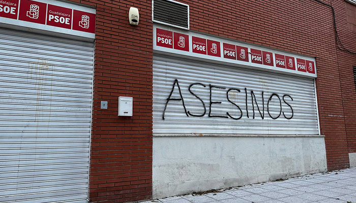 PSOE Guadalajara quiere mostrar su repulsa y condena de este tipo de actos vandálicos que se están produciendo estos días tanto hacia las sedes del Partido Socialista en España e, incluso hacia a algunos cargos públicos ligados al partido, así como se quiere hacer un llamamiento a la cordura. Frente a los que hacen bandera del odio, la intolerancia y la crispación queremos manifestar que vamos a seguir trabajando en defensa del respeto, la convivencia, la solidaridad y los valores democráticos.