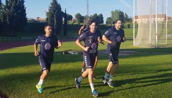 La plantilla del Quabit Guadalajara ha comenzado esta mañana sus entrenamientos de pretemporada con magníficas sensaciones. Tras la primera sesión matutina de carrera, César Montes ha asegurado en rueda de prensa que los jugadores se encuentran en muy buenas condiciones tras el parón veraniego. El entrenador del Quabit, César Montes, está muy satisfecho con esta primera toma de contacto en las pistas de atletismo Fuente La Niña, aunque todavía queda mucho trabajo por hacer: “los jugadores han vuelto mejor que nunca físicamente y vienen con ilusión y ganas de mejorar los resultados cosechados la pasada temporada. Todos teníamos ganas de comenzar con el balonmano”. A la cita ha asistido buena parte de la plantilla, exceptuando a los internacionales junior Alberto Sanz y Antonio Serradilla, quienes hasta ayer disputaban el Europeo de Eslovenia, y a José Javier Hombrados, que no ha podido participar en el entrenamiento por motivos laborales. También hemos podido ver caras nuevas procedentes de la cantera, que harán la pretemporada con el primer equipo. De los jóvenes canteranos, al juvenil Pablo Román y al ya conocido Chema Celada, se sumarán en las próximas sesiones el pivote Daniel Cruz, procedente del filial y Alex López, primera línea que jugó el pasado año en el equipo juvenil.