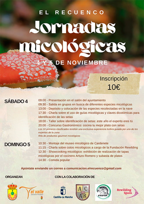 El Ayuntamiento de El Recuenco (Guadalajara) organiza, junto con la Asociación micológica El Valle (AMIVALL), unas jornadas micológicas los próximos sábado 4 y domingo 5 de noviembre.
