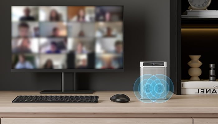 Tiene una cámara web de 2.5K con soporte HDR y un campo de visión de 93.8 grados. La base ajustable ofrece un cambio de inclinación de 10° a la vista. Con la ayuda del diseño de altavoz dual independiente de 4 Ω/3 W, la distorsión máxima del sonido no supera el 5 %, lo que refleja la voz humana auténtica. El micrófono utiliza la matriz dual MEMS con un chip DSP independiente como ayuda. Combinado con el algoritmo de inteligencia AI, no solo puede suprimir la reverberación, reconocer de manera inteligente la voz humana, sino también eliminar el ruido ambiental, restaurando así con precisión la voz humana.