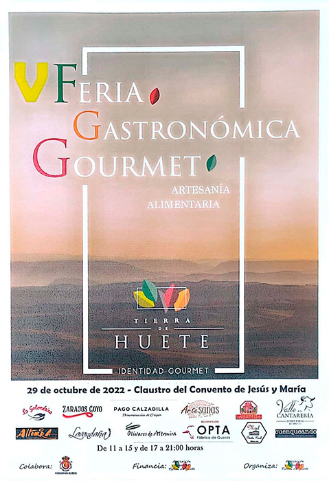 El sábado 29 de octubre Huete celebra la V Feria Gastronómica Gourmet Tierra de HueteEste sábado 29 de octubre se celebra, con la colaboración del Ayuntamiento de Huete, la V Feria Gastronómica Gourmet TIERRA DE HUETE.
