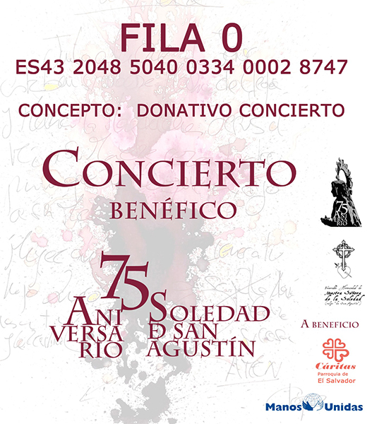 El Salvador acoge este sábado el XIII Encuentro de Música Sacra ‘Soledad de San Agustín’La V. H. de Ntra. Sra de la Soledad (vulgo de San Agustín) celebra este año una efeméride muy especial: el 75º Aniversario de la hechura de la talla de su imagen titular. Para conmemorarlo, la Hermandad ha organizado un programa de actos y cultos extraordinarios, que comenzaron el pasado 18 de marzo con el Concierto Benéfico ofrecido por la Juvenil Filarmónica de Villamayor de Santiago y que continúa este sábado 26 de marzo con el Encuentro de Música Sacra ‘Soledad de San Agustín’.