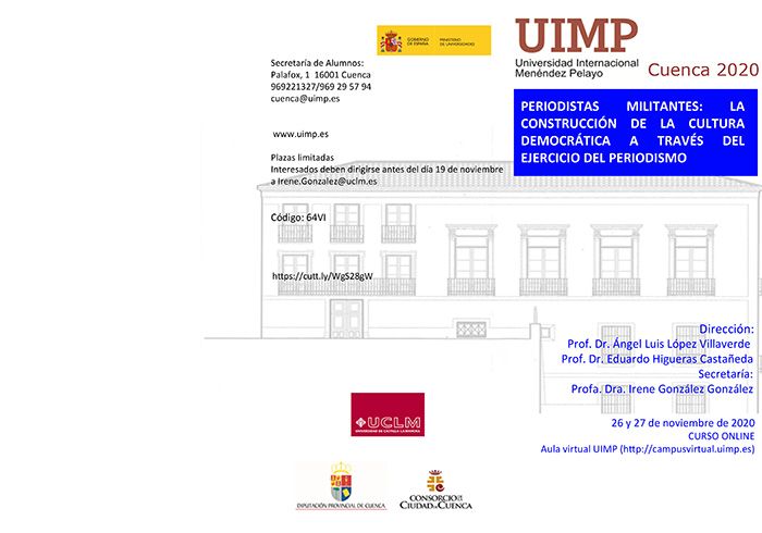El Seminario Permanente de Estudios Contemporáneos, en colaboración con la Universidad Internacional Menéndez Pelayo, organiza un curso online titulado “Periodistas militantes: la construcción de la cultura democrática a través del ejercicio del periodismo” los días 26 y 27 de noviembre.