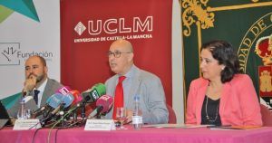El Termómetro Económico de Castilla-La Mancha ha sido presentado esta mañana en la Facultad de Ciencias Jurídicas y Sociales de Toledo por Vicente Muñoz, la vicerrectora de Internacionalización y Formación Permanente de la UCLM, Fátima Guadamillas, y el profesor Mario Donate, coordinador del Termómetro, en presencia del director de la División de Relaciones Institucionales de Eurocaja Rural, Miguel Ángel Escalante Pinel.