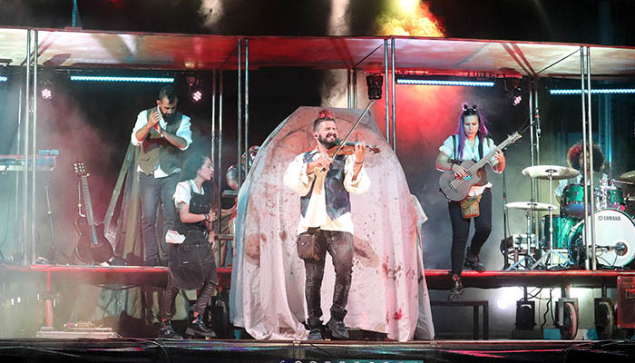 El fin de semana «prefiestas» comenzó este viernes 15 de julio con la celebración del primer gran espectáculo de cuantos se van a desarrollar a lo largo de los próximos diez días. Regresaba a Cabanillas del Campo «STRAD, el violinista rebelde«, alter ego de Jorge Guillén, un magnífico y laureado violinista formado en el Real Conservatorio Superior de Música de Madrid, la Escuela Superior de Música Reina Sofía o el Liceo de Barcelona, y que, acompañado de una extraordinaria banda, presentaba su nuevo espectáculo, «Ícaro».