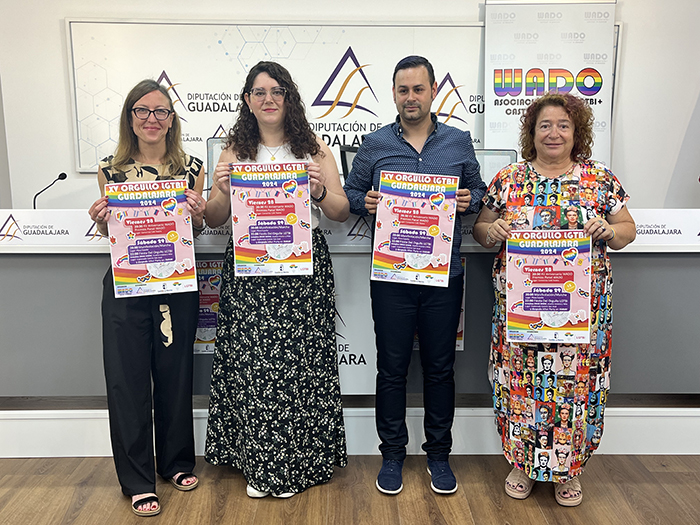 La Diputación de Guadalajara, colaboradora de dichos eventos, ha acogido hoy la presentación oficial de los mismos, en la que han estado presentes tanto la diputada delegada de Turismo, Arantxa Pérez, como la delegada de Igualdad de la Junta de Comunidades de Castilla-La Mancha (institución también colaboradora), Laura Gil, y la presidenta y vicepresidente de WADO LGTBI+ Marina Rojo y Eduardo de Miguel, respectivamente.