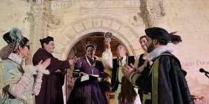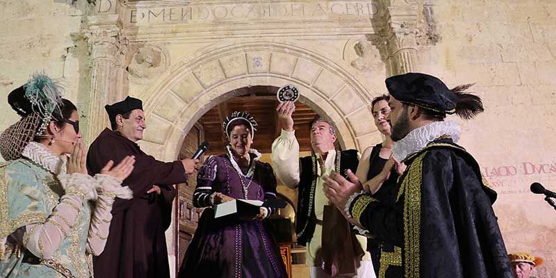 El Palacio de Covarrubias, extendido en tres escenarios sobre la Plaza de la Hora, se convertía en el lugar perfecto para rememorar lo que acontecía en el siglo XVI, prácticamente en los mismos lugares donde sucedió realmente. Para escribir el libreto del espectáculo, Gumiel partió del libro ‘La Villa Ducal’ de Pastrana, de Esther Alegre, profesora de la UNED, y de otros muchos de la erudita pastranera, primer premio Princesa de Eboli. La profesora universitaria también ha sido protagonista en la XVIII edición del festival, con una conferencia que recordaba aquel año, titulada ‘1569: Ruy Gómez de Silva llega a Pastrana para ser su Señor’.