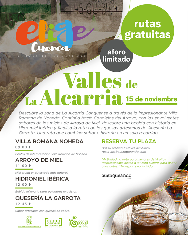 Elige Cuenca finaliza sus rutas otoñales con una doble propuesta para este sábado 15 de abril en el que los usuarios podrán optar por compartir patrimonio y gastronomía en la zona de La Mancha o en La Alcarria.