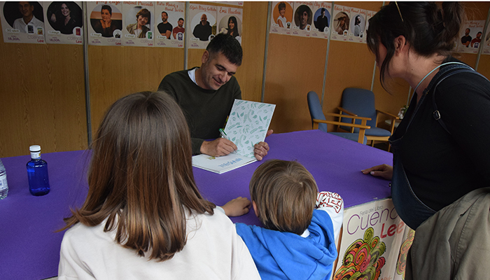 La Feria del Libro Cuenca Lee 2024 continúa con gran afluencia de público en la Plaza de España donde este domingo volvían a repetirse las colas para la firma de ejemplares de Eloy Moreno que momentos antes mantenía un encuentro con los lectores en Aguirre, al igual que Alfonso Goizueta hacía lo propio en la biblioteca de Buendía.