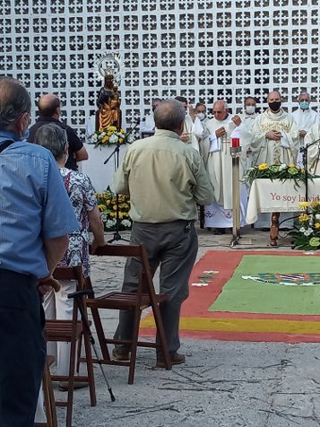 Y a la tercera va la vencida o no hay dos sin tres, que tres grandes homenajes han rendido los brihuegos a sus Monjas, a las 20 horas se inicio la procesión de sacerdotes desde la capilla del convento a la explanada, diecinueve sacerdotes fueron los que fueron apareciendo por la puerta de la misma, uno de ellos estaba entre el público, D. Luis Mayor de Budia, (párroco que fue de Santiago y Santa María de Guadalajara) y algunos de los rostros conocidos para los brihuegos, como D. Jesús de Torija, Fuentes y Valdesaz, D. Pedro de Villaviciosa, Yela y Hontanares, Don Mauricio Muela Abanades, Vicario que fue de Brihuega, hoy Párroco en Cogolludo, los brihuegos Miguel A. Garrido Corral, Jesús Riaza Cabezudo o el franciscano Javier Rojo Alique, (predicador del novenario a la Virgen de la Peña para 2021) precedían al Sr. Obispo D. Atilano, D. Ángel Moreno Sancho, Vicario Episcopal para la Vida Consagrada, Agustín Bujeda Sanz Vicario General para la Diócesis, D, Ángel Gonzalo Gonzalo, Capellán de las Monjas que se nos marchan, y los párrocos briocenses D. José F. Pérez de Bricio Ramos y D. Antonino Salmerón Hernando, y así hasta un total de veinte sacerdotes más, el coro de la parroquia que dirige Adelardo Ortega Caballero se encargo de cantar la Santa Misa presidida por D. Atilano Rodríguez Martin, asistieron entre otros el Sr, Alcalde, el Sr. Tte. de la Guardia Civil y los Srs. y Sras. Concejales de la Oposición, la Presidenta de la Cofradía de la Virgen de la Peña y religiosas de Buenafuente del Sixtal y Valfermoso de las Monjas y Casarribios del Monte, hermanas de las briocenses de Santa Ana que habían colocado en lugar preferente la imagen de la titular del Convento y otra de la Virgen de la Peña, la Eucaristía transcurrió con normalidad, el Sr. Obispo más o menos felicito a las hermanas por la decisión tan difícil que habían tomado y a los brihuegos por el gran comportamiento con ellas, comento de los trabajos que habían tenido, pero sobre todo educar a los niños y niñas. No nos podemos olvidar de Sor Isabel, Madre Abadesa, Sor Teresa, Madre Abadesa y Sor Victoria y Sor. Amelia, así como todas las fallecidas, pero principalmente las que se fueron al Padre recientemente como Sor Luisa y Sor Socorro.