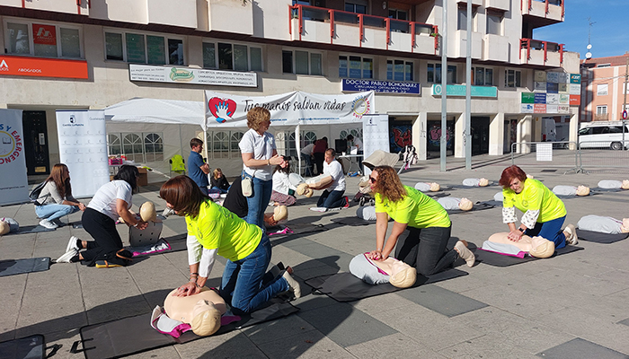 La plaza de Santo Domingo, en la capital, ha acogido una serie de talleres de reanimación cardiopulmonar (RCP) que, dirigidos por formadores sanitarios y voluntarios de la asociación, ha permitido proporcionar a las ciudadanas y ciudadanos que así lo han deseado los conocimientos necesarios para la aplicación de técnicas básicas de reanimación ante una parada cardíaca.