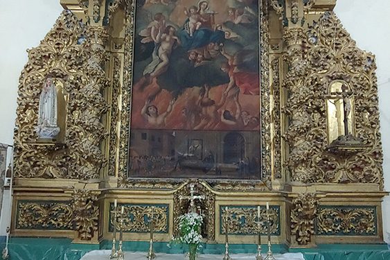 Entrando, en la nave lateral derecha, destaca igualmente el retablo barroco de las Ánimas que representa, durante las fiesta de carnaval, la “entrega de las armas” y, como pórtico al coro, las imágenes de una Dolorosa y el Nazareno, obras de Fausto Culebras, nacido en Gascueña en el año 1900, el tercer hijo de una familia más que numerosa con siete chicos y una chica. Con 14 años se marcha a Madrid y dos años después regresa a Gascueña como cortador del oficio de sastre pero, como le gustaba pintar, le consiguen una beca de la Diputación.