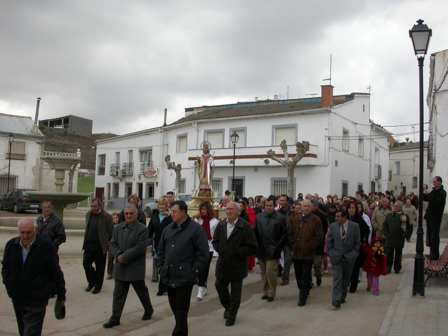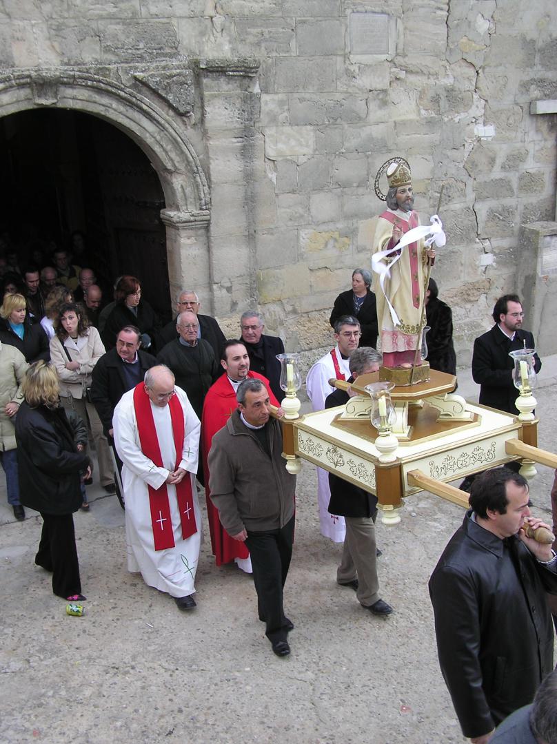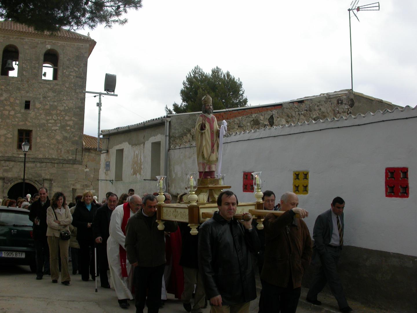Ha llegado el párroco y con todo dispuesto, es hora del comienzo de la procesión. Los sonidos de las dulzainas interpretando el Himno Nacional, señalaban al vecindario que la imagen del Santo abogado de las enfermedades de la garganta estaba en la calle. Con las músicas de antiguos paloteos, danzados años atrás por esta zona de la Alcarria, camina la procesión sin que en ningún momento cesen los rezos y los ¡vivas! al patrón.