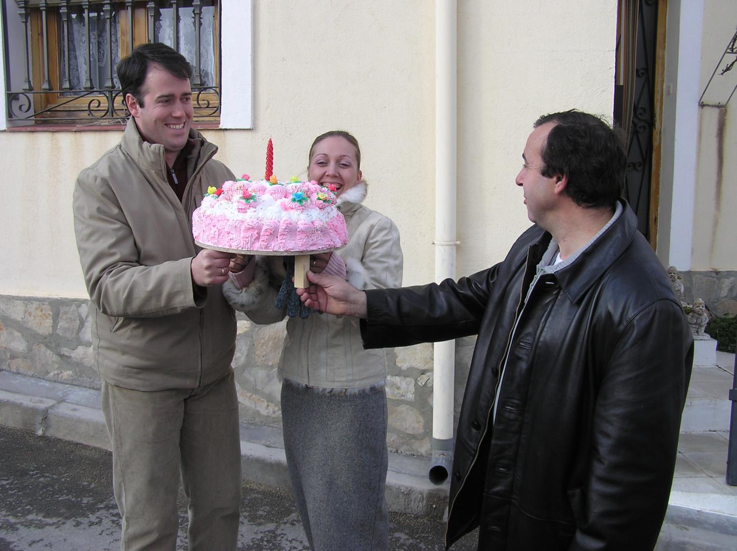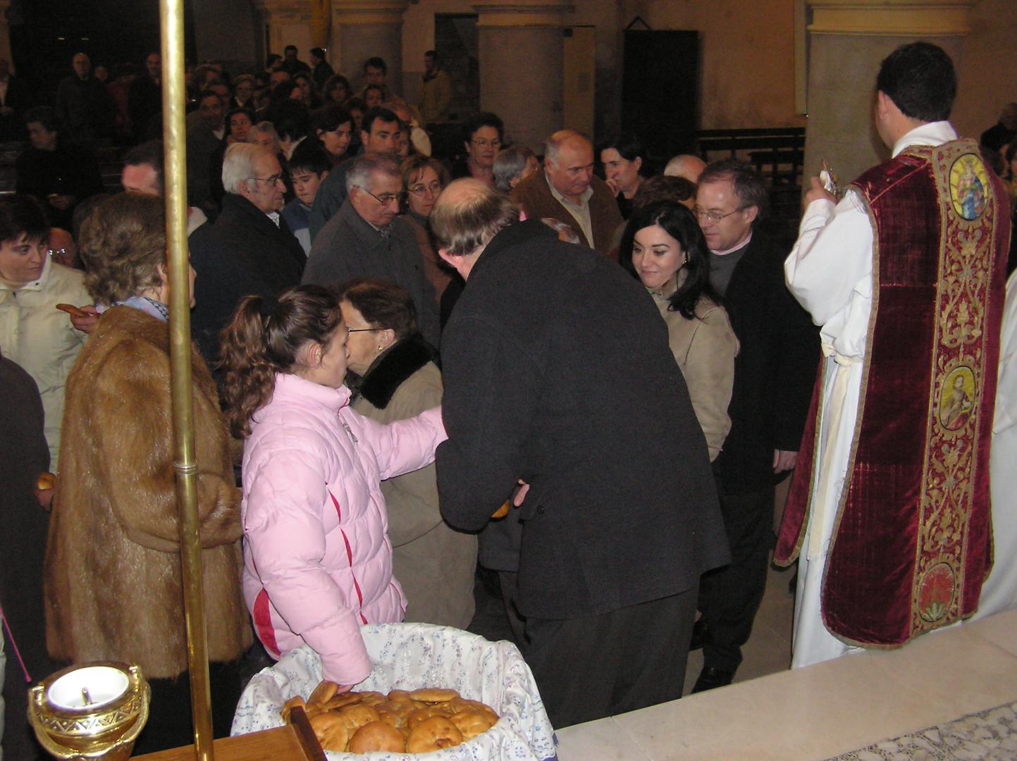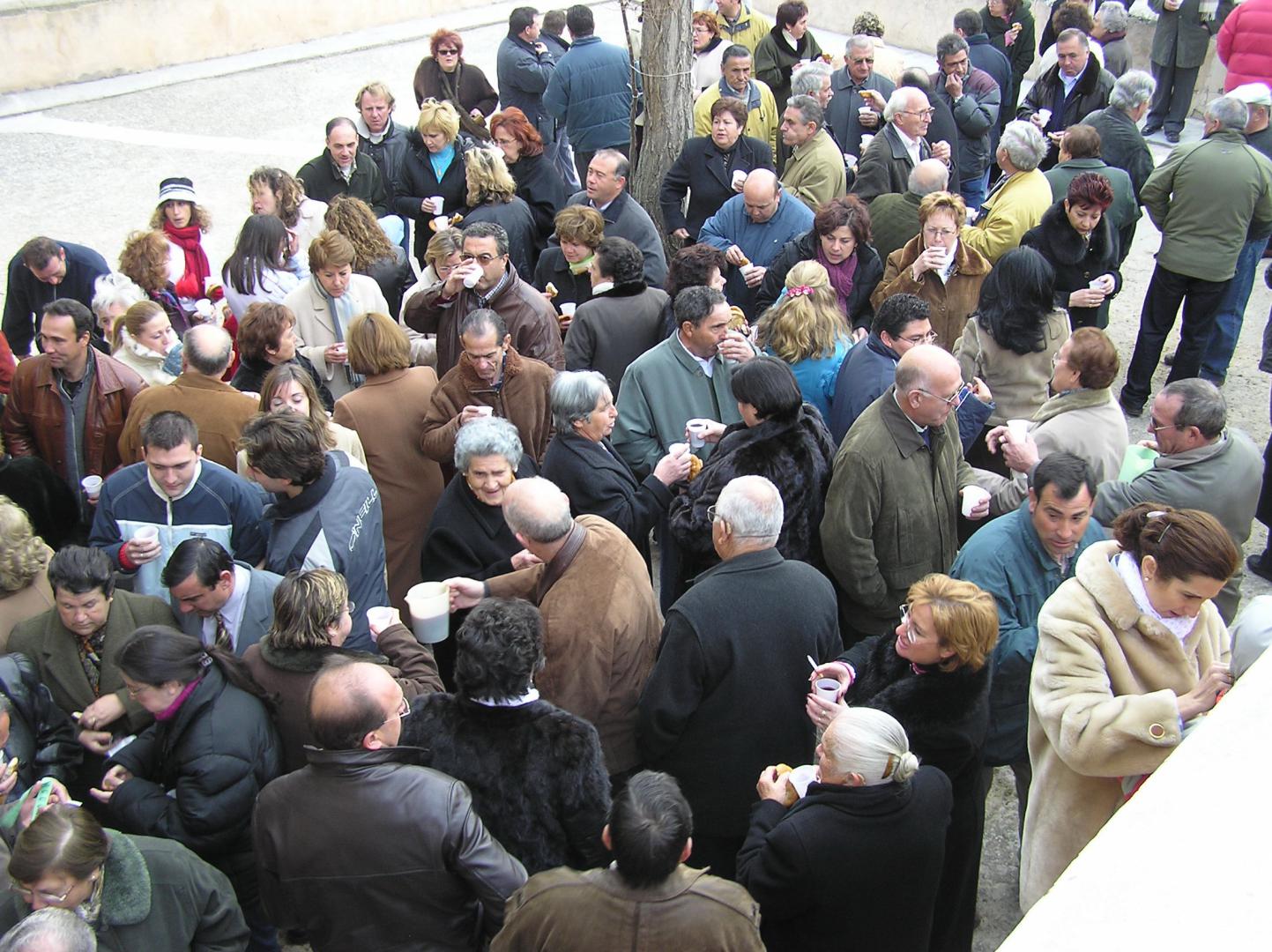 Así se va realizando el recorrido por el pueblo, que lleva todos los asistentes a la iglesia para la misa de celebración en torno a San Blas, misa concelebrada y armonizada por un Coro de jóvenes llegados desde Huete. Al acabar la ceremonia religiosa se canta con determinación el Himno a San Blas; luego, Juan Pablo el párroco, ha bendecido la ‘caridad’, y se ha dispuesto el orden para besar inmediatamente después, una reliquia del Santo traída desde Huete, y la entrega de la ‘caridad’, los panecillos, por la familia carideira de Jesús Muñoz, a los presentes. En el atrio del templo se repartía una zurra a cargo de Aurora y Pedro y se procedería a la rifa de la tradicional ‘tarta’ del Santo.