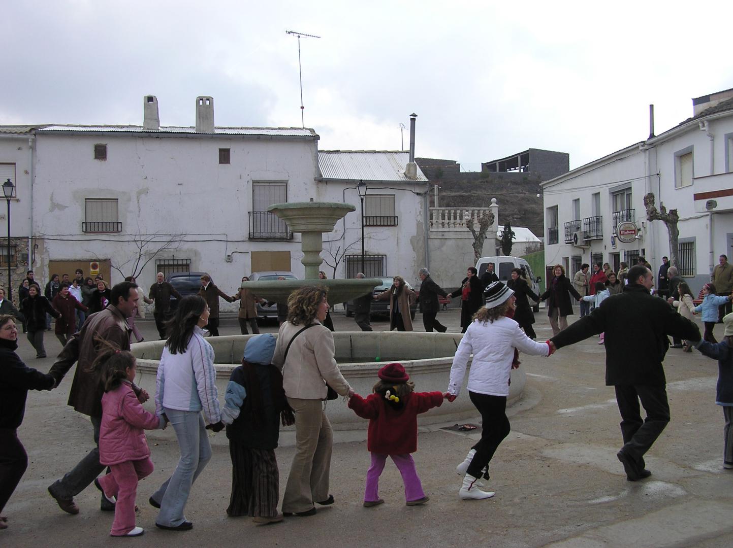 Hace frío en esta mañana del domingo 6 de febrero del año 2005. La carretera que me lleva hasta La Peraleja, por La Ventosa, tiene humedad reciente y a ratos llueve. Yo, me sigo sorprendiendo por estos espacios solitarios que dibujan altillos y barrancos con olivar y pinar, llanos grises y marrones, donde el campo espera su tiempo para abrir una nueva primavera. En la cercanía al pueblo, aún se ve a alguna familia retirando la aceituna que todavía les queda. Antes de llegar al pueblo, en las alturas se dibuja el horizonte arquitectónico de la Ermita de la Virgen del Monte, la patrona, que se viene a festejar con romería el 8 de septiembre.