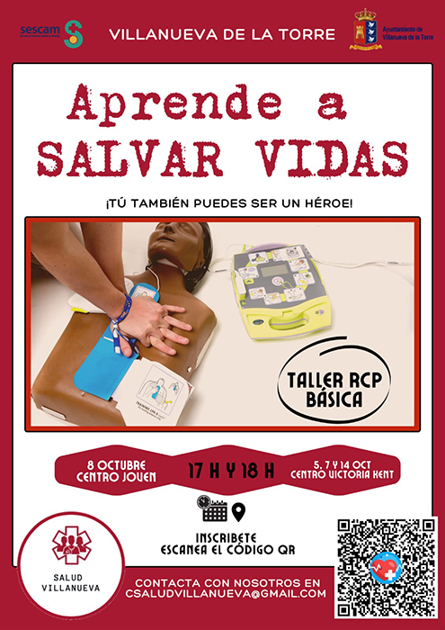 El equipo profesional impartirá un contenido teórico-práctico, que consistirá en RCP básica para adultos (basado en las últimas guías ERC 2021, aplicando la normativa para Covid-19) y manejo de DEA. Se realizará un simulacro y, posteriormente, las personas asistentes podrán practicar con maniquíes los pasos de la cadena de supervivencia. Finalmente, se entregará a todos los asistentes un folleto resumen con los aspectos más relevantes de la guía ERC 2021 y con un código QR con mapa de localización de los DEA en Villanueva de la Torre.