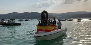 Este año, alrededor de 60 embarcaciones, la mayoría motoras, se concentraron en el lugar conocido como “El Cuerno del Rinoceronte”, para iniciar la procesión marinera que desembocó en el Club Náutico Castilla. A continuación, se celebró la santa misa en la ermita de la Urbanización Las Anclas, cuya capilla está dedicada a la advocación de la Virgen del Carmen, patrona de los marineros, y posteriormente se ofreció un aperitivo en las instalaciones del club.