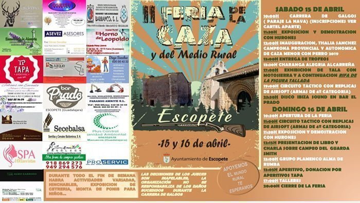 El Ayuntamiento de Escopete, una pequeña población situada en la Baja Alcarria, celebrará los próximos días 15 y 16 de abril la “ll Feria de Caza y Medio Rural”.