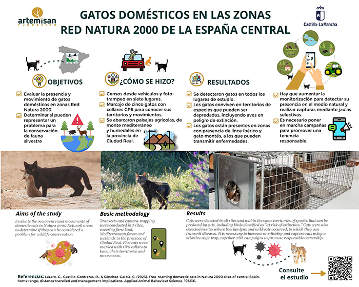 Para Carlos Lázaro, investigador de Fundación Artemisan y coautor del artículo, “los resultados son muy alarmantes porque en todos los casos se detectaron gatos dentro de las zonas protegidas». «Además, es posible que solo estemos viendo la punta del iceberg, dado que España cuenta con una superficie en Red Natura de unos 138.000 km2 y tenemos una población de gatos censados de alrededor de seis millones. Por lo tanto, es probable que este problema sea mucho mayor”, ha afirmado.