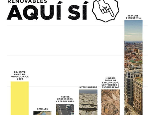 El estudio “Renovables sostenibles: fotovoltaica” constata que aprovechando estas superficies antropizadas en España sería posible instalar 181 GW para producir más de 272.037 GWh/año en energía fotovoltaica, una cifra superior a la que se consume en el país (259.905 GWh en el año 2021). ALIENTE ha demostrado mediante datos cartografiados que hay tejados y cubiertas de edificios y naves en zonas industriales para instalar fotovoltaicas cumpliendo en un 57% este objetivo, pero también en invernaderos ya consolidados (17%), en minas abandonadas (16%), en infraestructuras viarias (5%), en canales al aire libre (3%) e incluso en vertederos y escombreras. Para España Vaciada esto demuestra que no hay falta de superficie disponible en entornos urbanos pues se constata con datos que hay comunidades autónomas con una gran superficie artificial industrial para instalar fotovoltaica, a la que se puede sumar la de entornos residenciales, colegios, polideportivos, estadios de fútbol, aeropuertos, edificios públicos o centros comerciales.