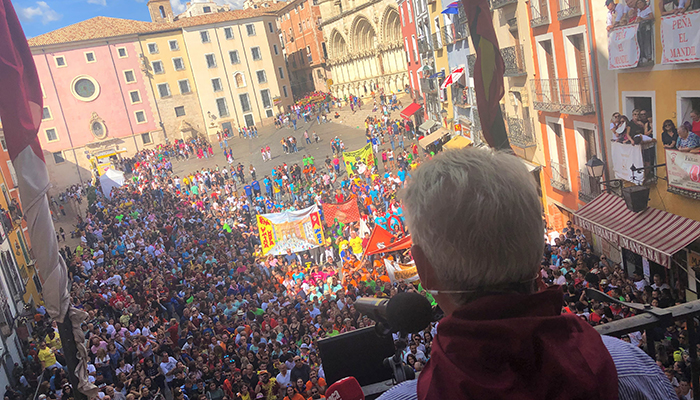 Miles de personas ya disfrutan de la fiesta grande de Cuenca en la Plaza Mayor tras el pregón de Fernando Herranz.