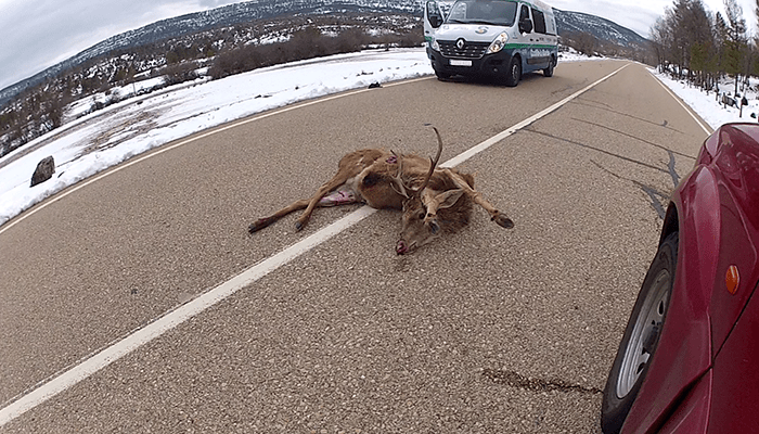 Una ambulancia atropelló ayer jueves a un joven ciervo de cinco puntas a la salida de Uña en dirección a Tragacete causando la muerte en el acto del animal.La ambulancia, que llevaba a un paciente de regreso a uno de los pueblos de la sierra conquense, sufrió escasos daños materiales, tan solo la rotura de las rejillas de plástico de la parte inferior.