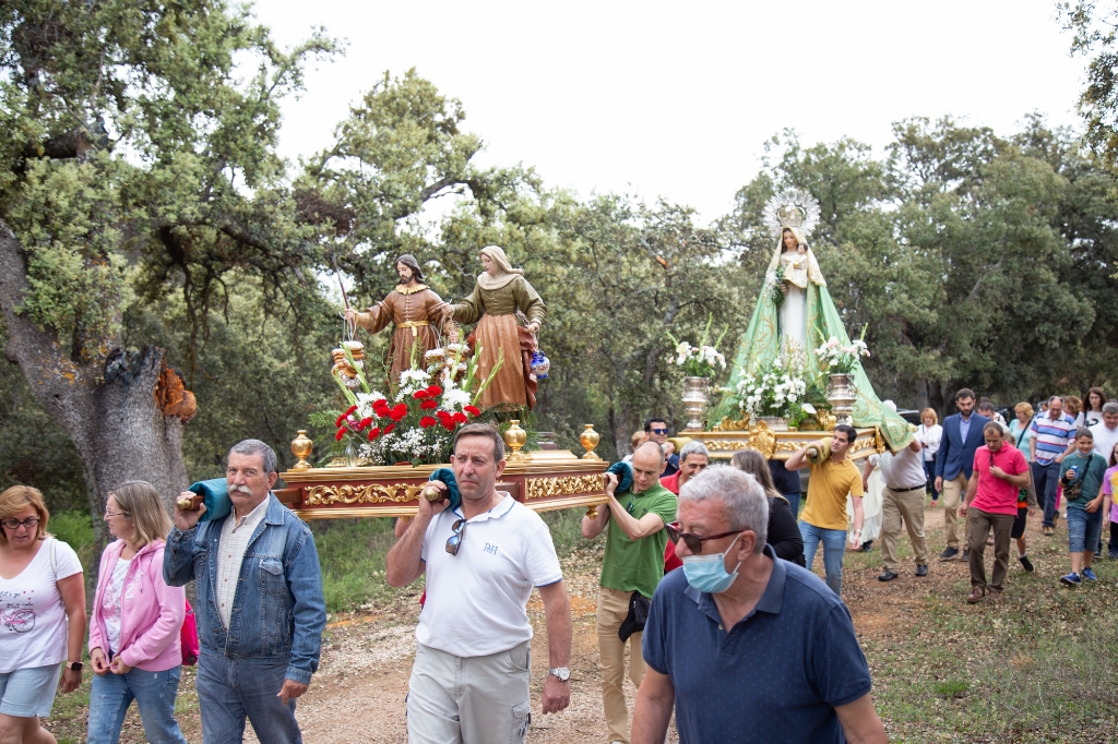 También respetó la lluvia la salida en procesión de la Virgen, que fue sacada a hombros por las fieles del pueblo, así como la posterior subasta que se llevó a cabo a la entrada de la iglesia. De igual modo, entre llovizna intermitente y resguardados con toldos y sombrillas, los vecinos de La Puerta disfrutaron de una agradable jornada en plena naturaleza. En su caso, el Ayuntamiento de Trillo también hizo entrega de un pequeño obsequio a todos los asistentes.