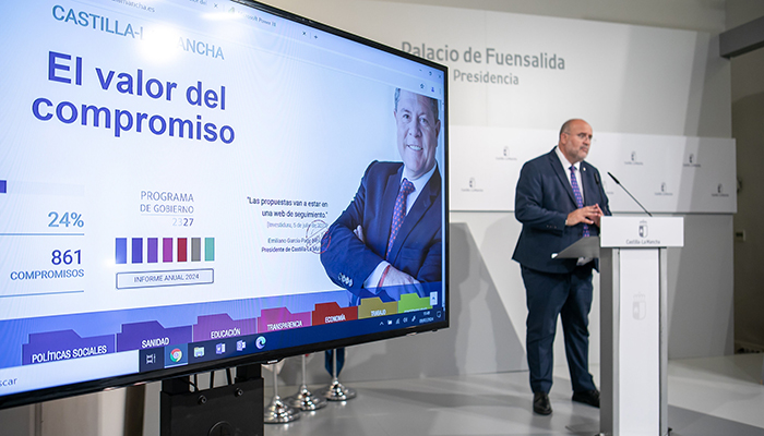 Por primera vez, la presentación del balance se hace en un formato visual e interactivo, que tiene un acceso directo desde la página de inicio del Portal de Compromisos del presidente García-Page (https://compromisos.castillalamancha.es/).