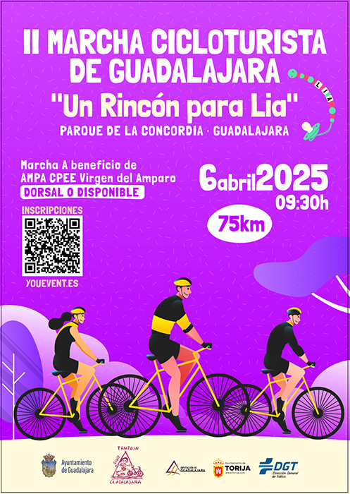 Un año más, el Club Triatlón Guadalajara en colaboración con el Ayuntamiento de Guadalajara nos propone pedalear por una gran causa, con la II Marcha Clicloturista de Guadalajara “Un Rincón para Lia».