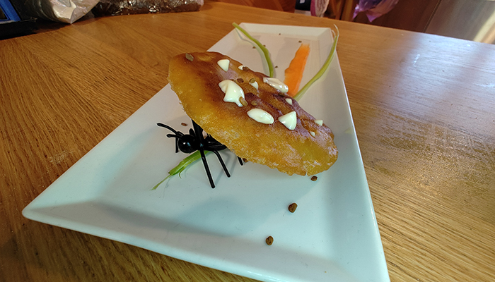 También participan dos clásicos del concurso en las pedanías seguntinas. El Restaurante La Granja de Alcuneza (Carretera Sigüenza-Medinaceli, km 5,9-Alcuneza) presenta su tapa ‘Galleta, galletita, donde vas tu tan bonita’. La chef, Estefanía Verdes, ha elaborado una galleta, con trigo sarraceno elaborada con harina Despelta. A la masa le añade huevo y mantequilla, y luego “un poco de avellana, cortadita, porque le aporta un sabor muy agradable”. La masa de la galleta se introduce en el horno. Para acompañarla, Estefanía elabora una salsa con mantequilla, bien batida, mermelada de melocotón y un poquito de nata, para que cueza un poco, ligue y se quede como una crema, más bien espesa, sobre la que untar la galleta. En el centro de sus dos piezas, coloca una molleja de ternera, que la chef macera con el caldo del cordero asado, a base de ajo, perejil, limón, laurel y tomillo. Una vez macerada, se asa, se deja que se enfríe y se corta como cualquier carne. Después de pasarla por la plancha, bien tostada, se introduce en la galleta. “El trigo sarraceno no tiene gluten y aporta mucha energía. A los soldados, en la Edad Media, tanto a moros como a cristianos, les daban estas galletas después de combatir, para que se repusiesen del esfuerzo. Y, con el IX Centenario, nos ha parecido apropiado utilizarlo”, termina la chef.