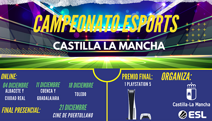 Sigue abierta la inscripción para que todos los jugadores y jugadoras de Castilla la Mancha puedan demostrar nivel y ganar la PlayStation 5, en la final presencial del Campeonato de esports de Castilla-La Mancha para el juego FIFA 22.