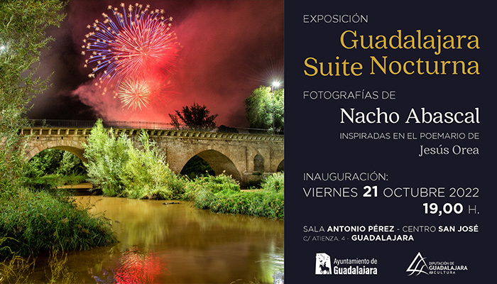 Este, viernes 21, se inaugura en la Sala de Arte Antonio Pérez de la Diputación de Guadalajara la exposición de fotografía “Guadalajara Suite nocturna” de Nacho Abascal, que podrá visitarse en los horarios habituales de la Sala hasta el próximo 19 de noviembre.