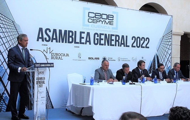 El presidente de Eurocaja Rural, Javier López Martín, ha participado esta tarde en el acto de clausura de la Asamblea General de CEOE CEPYME Cuenca, que se ha celebrado por vez primera en la ciudad de Tarancón.