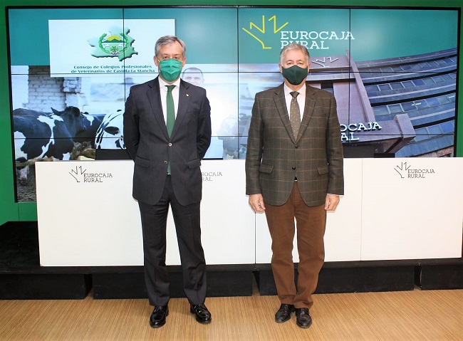 El convenio fue suscrito por el presidente de Eurocaja Rural, Javier López Martín, el presidente del Consejo de Colegios Profesionales de Veterinarios de Castilla-La Mancha, Luis Alberto García Alía, en los Servicios Centrales de la entidad financiera.