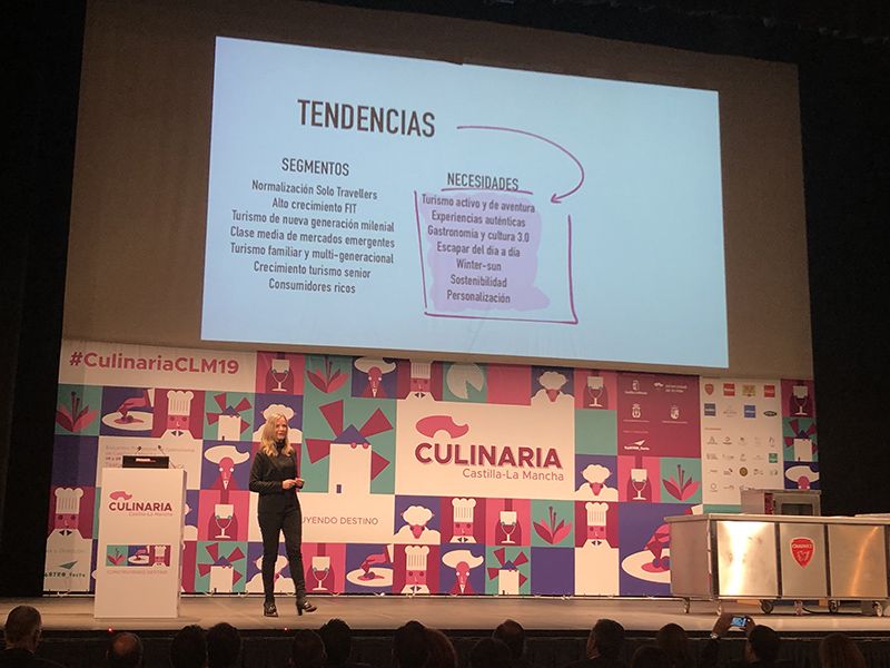 «La gastronomía, en el turismo, aunque no sea entendida como prioridad de un destino, sí debe ser entendida como necesidad» aseveraba Ballarin durante su ponencia inaugural. Bajo el título Claves para una estrategia de dinamización turística en gastronomía, la speaker internacional ha desarrollado una ponencia en tres bloques en la que ha situado primero las tendencias en segmentos de cliente, necesidades del cliente-persona y comportamientos de ese cliente, para definir luego las claves de la identidad asociada al turismo a través del territorio y las personas. Finalmente, Ballarin ha presentado a los más de 700 asistentes reunidos en el Teatro Auditorio de Cuenca dos estrategias de destino turístico inspiradoras para Castilla-La Mancha, estrategias que abrían la puerta a una serie de preguntas cuyo objetivo era hacer reflexionar a todos los actores que conforman la estrategia turística de la región sobre lo que se está haciendo y lo que se debe hacer para definir y conseguir objetivos.