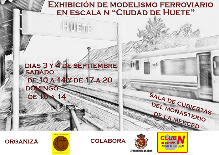 Los días 3 y 4 de Septiembre se celebrará en nuestra ciudad la I Exhibición de Modelismo Ferroviario en Escala N » Ciudad de Huete», organizado por la Agrupación Conquense de Modelismo Ferroviario (ACOMOFE) en colaboración con el Club N de España y el Ayuntamiento de Huete.