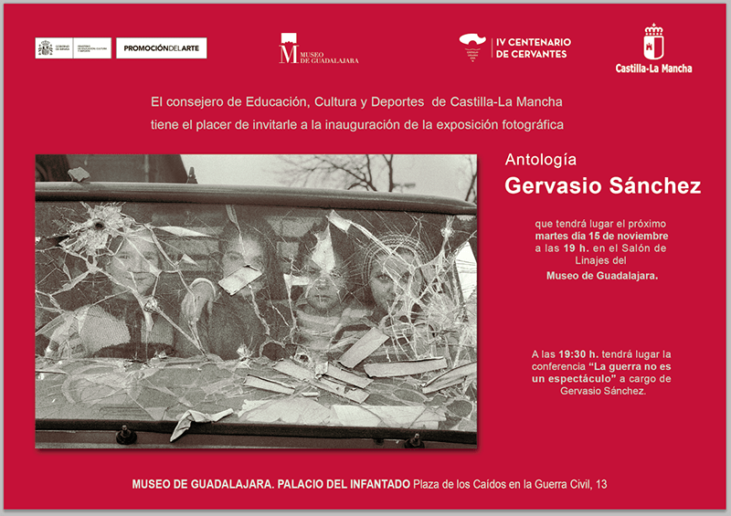 Una muestra del trabajo fotoperiodístico de Gervasio Sánchez llega mañana al Museo de Guadalajara en una exposición compuesta por 129 fotografías más 24 retratos, que permanecerá abierta al público hasta el próximo 15 de enero. La inauguración tendrá lugar a las 19,00 horas con la presencia del director provincial de Educación, Cultura y Deportes, Faustino Lozano, el director del Museo, Fernando Aguado, y el propio Gervasio Sánchez, que seguidamente, a las 19,30 horas, pronunciará una conferencia titulada “La guerra no es un espectáculo”.