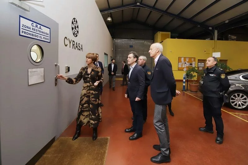 El delegado del Gobierno España en Castilla-La Mancha, Francisco Tierraseca, acompañado del subdelegado en la provincia de Cuenca, Juan Rodríguez Cantos, ha visitado las instalaciones de la empresa Cyrasa Seguridad, en Cuenca.