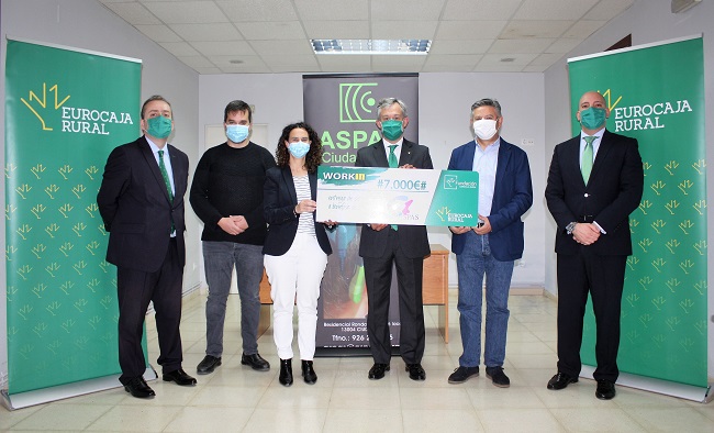 La Fundación Eurocaja Rural ha entregado un cheque con valor de 7.000 euros a la Asociación de Padres y Amigos del Sordo – ASPAS Ciudad Real, en reconocimiento al proyecto Servicio de Intermediación Laboral para personas sordas de la provincia de Ciudad Real, una de las diez iniciativas ganadoras de la 5ª edición de los ‘Premios WORKIN’.