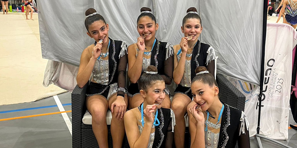 El conjunto infantil base con cinco cuerdas realizó un gran trabajo en equipo. Aunque no consiguió clasificación, su ejercicio dejó claro el progreso que están logrando con tan poco tiempo de entrenamiento juntas, debido a varios contratiempos y lesiones. Siguiente cita: el próximo 21 de noviembre en el campeonato nacional base de conjuntos en Castellón. Una gran oportunidad para poner el broche final a una preciosa temporada de esfuerzo, amistad y complicidad de estas cinco gimnastas.
