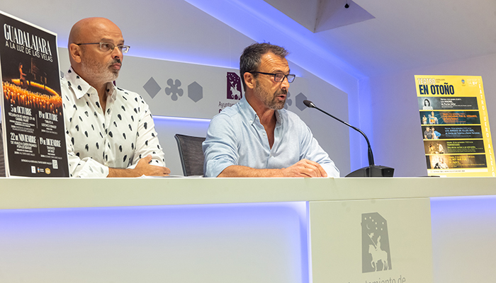 El concejal de Cultura del Ayuntamiento de Guadalajara, Javier Toquero, junto al director de escenarios culturales de la concejalía de Cultura, Julio Gómez, han presentado buena parte de la que será la programación cultural para los próximos meses, en la que destaca la iniciativa ‘Guadalajara a la luz de las velas’, «una oportunidad de disfrutar de la música en directo en escenarios únicos como pueden ser el cementerio, la Iglesia de San Francisco o el escenario del Teatro Buero Vallejo», ha comentado Toquero.