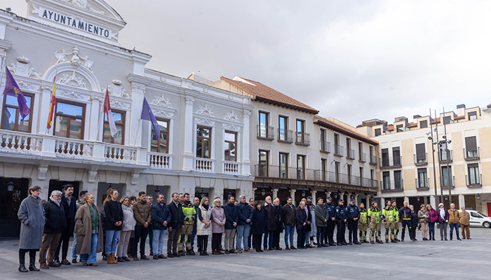 Responsables políticos de la administración local, provincial y regional, junto a policías locales, bomberos, trabajadores municipales y ciudadanos, han participado este lunes al mediodía en un minuto de silencio convocado por el Ayuntamiento de Guadalajara como muestra de solidaridad, tras el devastador incendio del pasado jueves en Valencia, que dejó la cifra de 10 fallecidos y cientos de personas afectadas por la pérdida de sus hogares.