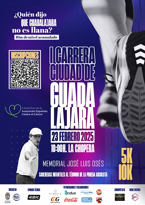 Guadalajara incorpora un 10K a su calendario de carreras en memoria de José Luis Osés y a favor de la AECCEl próximo 23 de febrero Guadalajara verá nacer una prueba muy especial y que llega para quedarse. Inmersa dentro del Circuito de Carreras de la Ciudad de Guadalajara, esta prueba popular llega con un perfil llano y rápido, que facilite la incorporación de aficionados populares que comienzan a correr y para corredores expertos que quieran mejorar su marca. Y es que la ciudad cuenta con varios eventos de running pero ninguno con un circuito favorable para la obtención de marcas debido a la orografía de la capital.