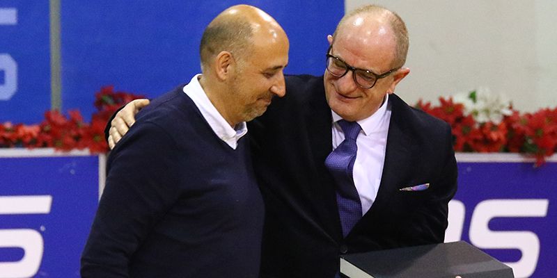 En una sencilla ceremonia, Carmelo Paniagua, presidente de la RFEP, pasó el testigo de la designación de Guadalajara como sede del XVIII Campeonato de España de Patinaje Artístico de Grupos Show a Santiago Nuero, técnico del Patronato Deportivo Municipal.