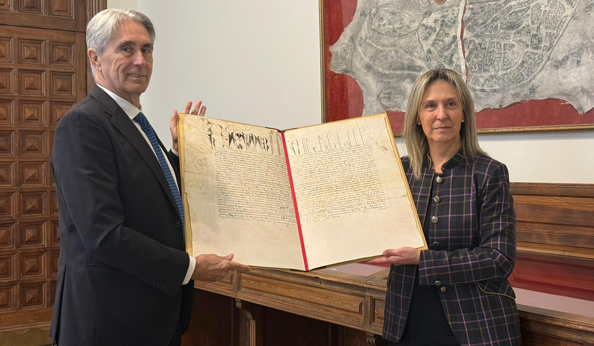La alcaldesa de Guadalajara, Ana Guarinos, ha recibido este lunes una copia facsimilar de la carta bulada que autorizó al cardenal Cisneros a fundar la Universidad de Alcalá, uno de los documentos clave del origen de la institución académica. La entrega se ha celebrado en Guadalajara de manos del rector de la Universidad de Alcalá, José Vicente Saz, en un acto con fuerte carga simbólica por su valor histórico y por coincidir con el final de su mandato.