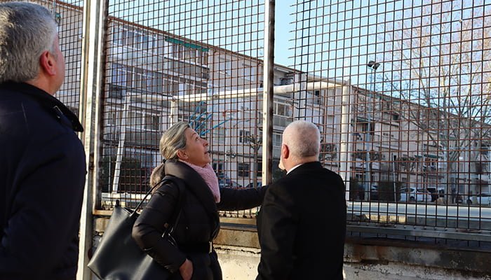 La candidata ha podido comprobar el intransitable estado de las aceras de la calle que alberga el acceso al colegio Badiel, en el que las raíces de los árboles han levantado el adoquinado que, junto con la estrechez de las propias aceras, hace que el acceso y el tránsito por las mismas “sea prácticamente imposible” y muchas madres con carros, abuelas o niños tengan que desplazarse por mitad de la calle con los riesgos que esto conlleva, incluso han advertido que varias personas ya han sufrido diversas fracturas por su mal estado y nulo mantenimiento. También han explicado que en las paredes exteriores del polideportivo del colegio comenzaron a hacerse unas grietas que han ido aumentando con el paso del tiempo, y que desde el ayuntamiento se han limitado a poner un parche rellenado las grietas originadas.
