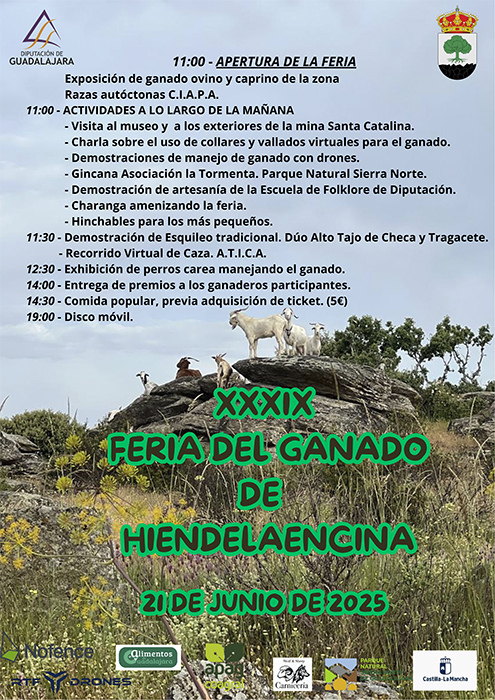 La XXXIX Feria del Ganado de Hiendelaencina, organizada por la Diputación Provincial y el Ayuntamiento del municipio, cuenta con la colaboración de la Junta de Comunidades de Castilla-La Mancha, Apag-Coagral y varias empresas del sector.