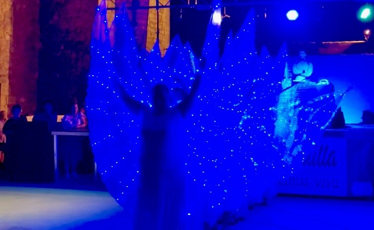 El evento es asombroso por su diversidad y calidad artística. Las mujeres del pueblo con mucho arte y salero preparan coreografías y escenografías que convierten el escenario de la plaza en un auditorio al aire libre digno de cualquier ciudad. Baile moderno, flamenco, danzas de ballet y hasta coreografías luminosas, como la de la foto en la que las integrantes lucen alas iluminadas que anoche fueron parte de un llamativo espectáculo. Este despliegue logra emocionar tanto a los vecinos como a los visitantes, que cada año se dejan sorprender por la originalidad y el sentimiento con el que se vive esta bonita actividad que ya es tradición. Además tuve la suerte de compartirla con Lali, una de sus impulsoras y pude presenciar cómo a pesar de las dificultades de la vida, mantiene su fortaleza y su sentido del humor intactos. La conocí en el primer Camino de Peregrinación, el de los Girasoles y las pedanías, que realizamos con AFAMMER entre Cuenca y Ucles y desde entonces la miro como esa gran amiga y referente que es. 14 años estuvo dedicada a hacer la sabanita de ganchillo que luce el Altar Mayor, una auténtica obra de artesanía para disfrutarla junto con la maravilla del Retablo y el Cristo que resistieron a los destrozos de las Iglesias en la Guerra Civil.