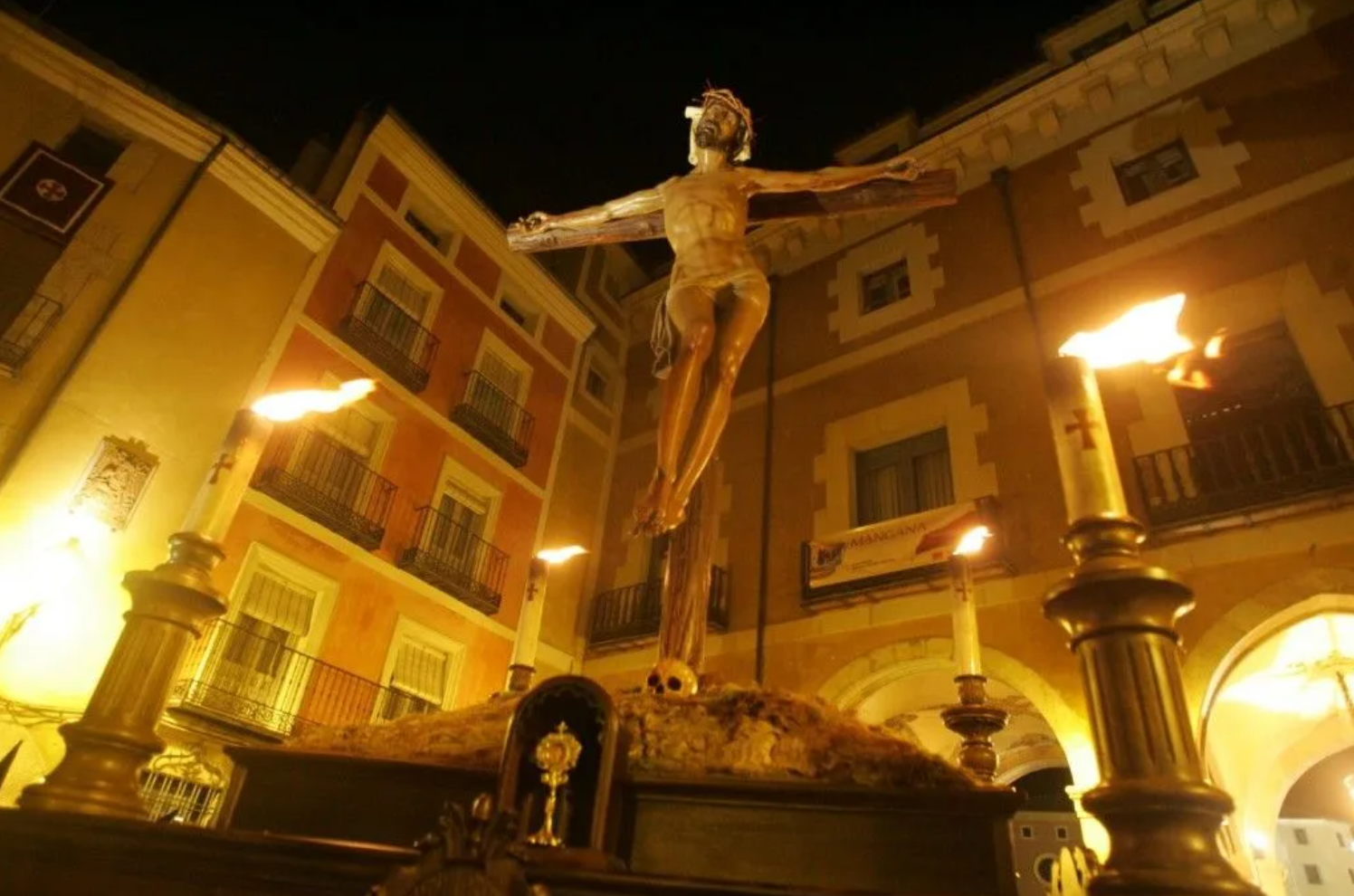 Así, el cortejo cruzará la Plaza Mayor y bajará por Alfonso VIII y Andrés de Cabrera hasta la calle del Peso, desde donde enfilará por Solera y Alonso de Ojeda hasta la Puerta de Valencia y, de allí, por Las Torres y Aguirre hasta su final en San Esteban sobre la 1:30 de la madrugada. Acompañarán a la Hermandad los estandartes y hermanos mayores de las hermandades de la Vera Cruz de Mira y de Villar de Domingo García, como cada Lunes Santo.