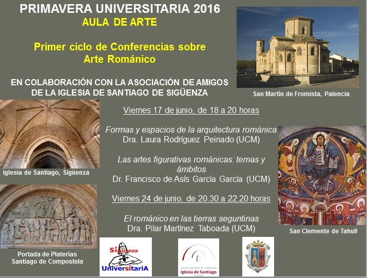 La Iglesia de Santiago de Sigüenza, una vez sea culminado su proyecto de renovación, se convertirá en Centro de Interpretación del Románico de la provincia de Guadalajara. Precisamente para conocer las claves de este estilo artístico, el Aula de Arte de la Primavera Universitaria 2016, dirigida por Pilar Martínez Taboada, en colaboración con la Asociación de Amigos de la Iglesia de Santiago, ha organizado este Primer Ciclo de Conferencias Sobre el Arte Románico.